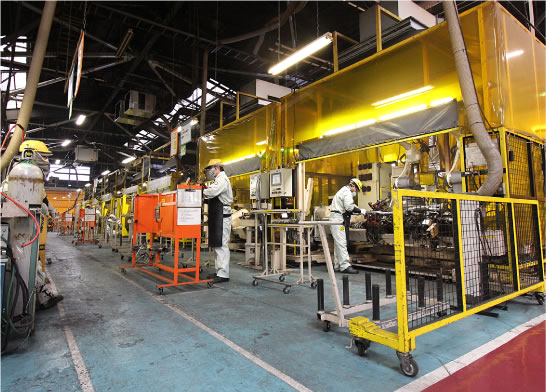 プレス→溶接→塗装→組立の一貫生産を可能にする生産工程、数々の生産設備を保有しております。